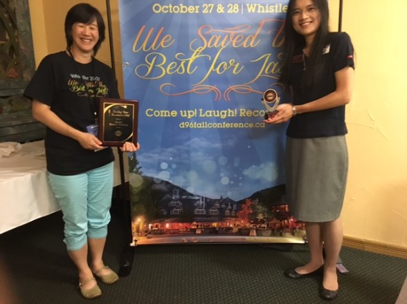 Guest Angela wins for Table Topics, Vivien wins for Evaluator (September 2017)