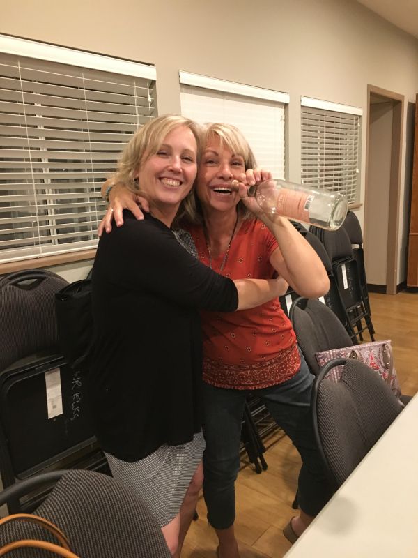 Carole, our VP of Ed, presented a delightful wine and celebrated after with Linda!