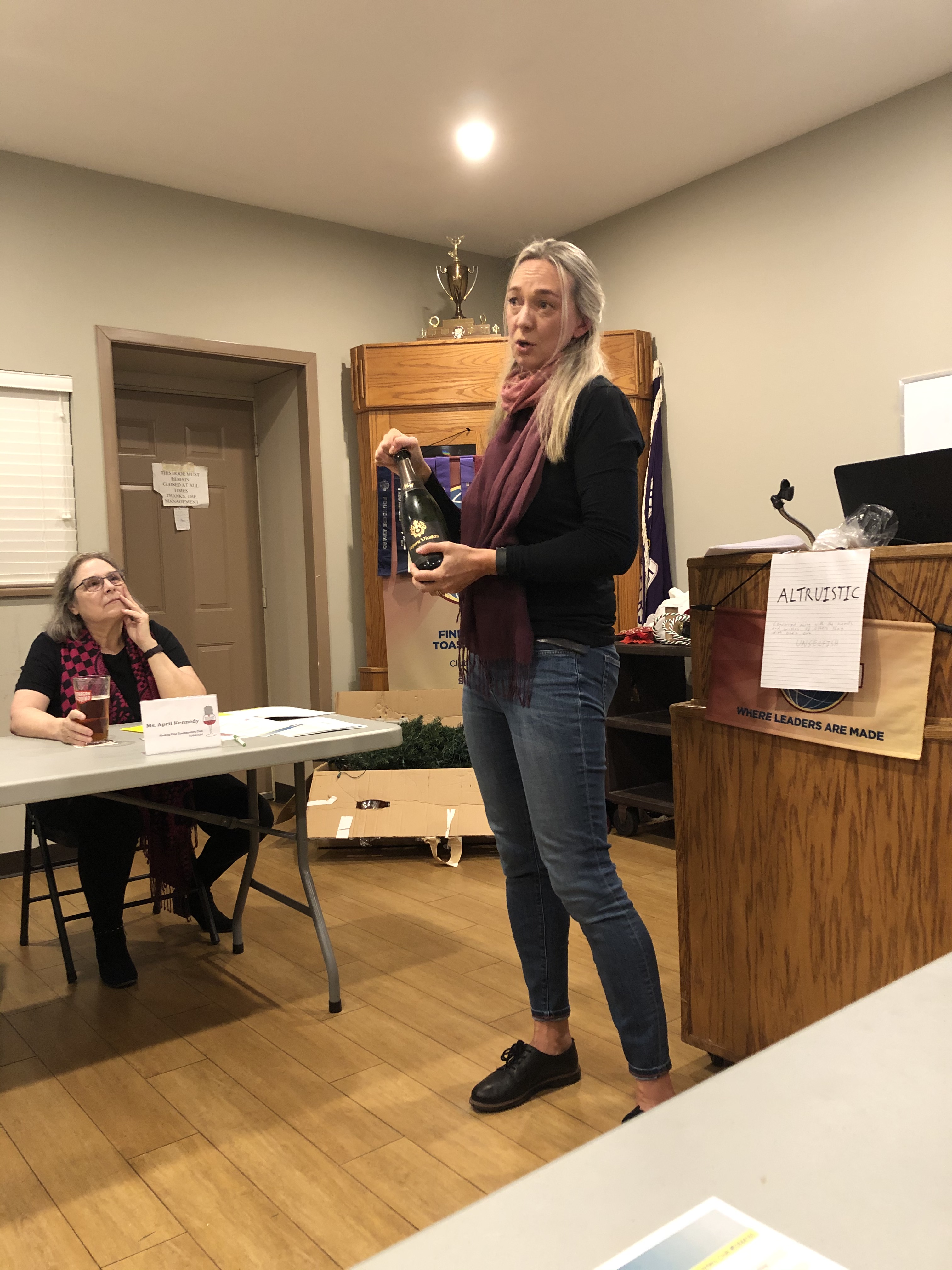 Sirpa presents the wine.