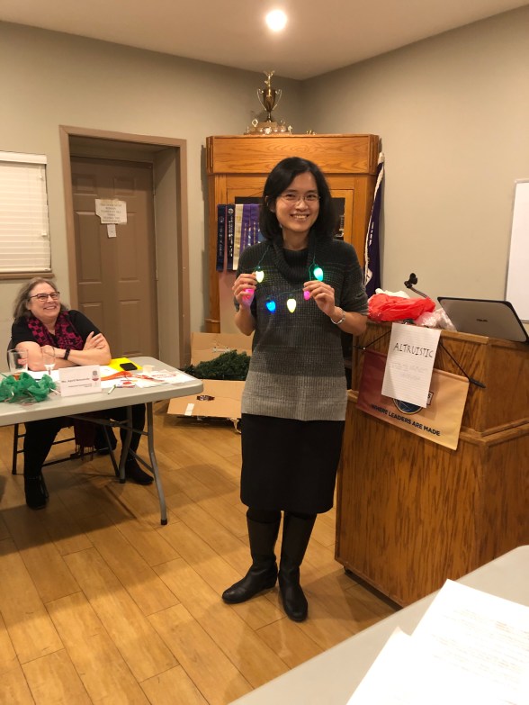 Vivien receives a light necklace.